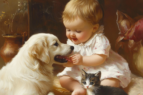כלבים וחתולים, החברים הפרוותיים שלנו, ניחנים ביכולת מדהימה לקרוא שפת גוף ולזהות רגשות, תכונה שמאפשרת להם להגיב באופן טבעי ונעים במיוחד לתינוקות. מחקרים מראים כי חיות מחמד מספקות לתינוקות תחושת ביטחון ורוגע. נוכחותו של כלב או חתול בבית יכולה להעניק לתינוק תחושה של "שותף למסע", מישהו שתמיד שם עבורו, גם כשהוא חוקר את העולם לראשונה.