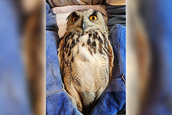 האוח, גדול דורסי הלילה בישראל, הגיע אל המרכז מרמת הגולן, לאחר שנמצא על ידי חן ענבר, מדריך באגמון החולה, בסמוך לכביש. האוח, שסבל מפגיעות ראש ושנפגע גם ברגלו, הועבר לטיפול במרפאה הקדמית באגמון, ולאחר שמצבו יוצב הוא החל לקבל טיפול בכדי לצמצם את הבצקת במוחו, שגרמה לעיוורון.