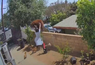 כפי שניתן לראות בסרטון האבטחה של מצלמות הבית, דובה חומה גדולה יחד עם שני גורים מאחוריה צועדים על גדר הבית, כאשר כלבי המשפחה - כלב גדול לצד מספר כלבלבי מחמד קטנים - נובחים לעבר הדובה כדי להרחיק אותה.