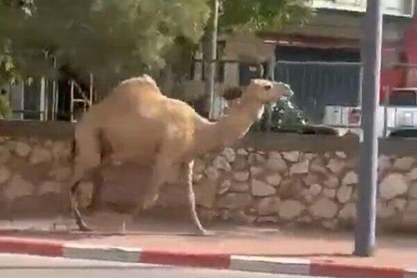 גמל נצפה היום (שלישי) ברחובות פארק התעשייה אפק שבראש העין. הגמל נצפה משוטט חופשי על הכבישים בין המכוניות כשבעליו לא נראה בסביבה.
