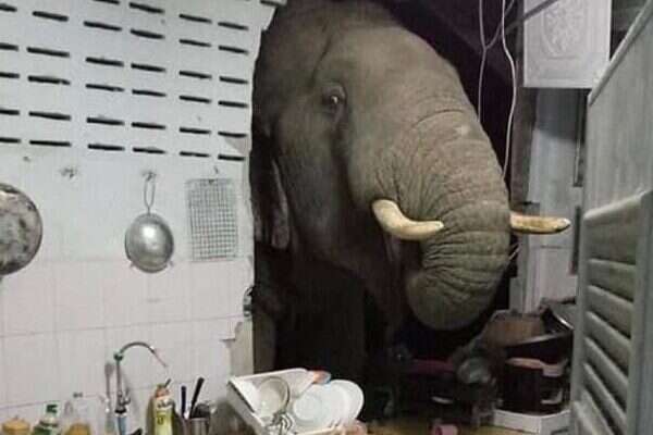 קפץ לנשנש: ראצ'אדוואן פואנגפרסופון, בת הכפר צ'אלרמקיאטפטאנה שבתאילנד, התעוררה בבוקר השבת האחרונה לקול רעשים מוזרים שבקעו מאחד החדרים בביתה. כשהלכה לברר את פשר הדפיקות והטריקות, גילתה להפתעתה ראש של פיל מבצבץ מבעד לפירצה בקיר המטבח.