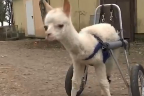 תיעוד מרגש: אלפקה מגרמניה בעל שלוש רגליים הצליחה ללכת באמצעות מכשיר מיוחד שיוצר עבורה.