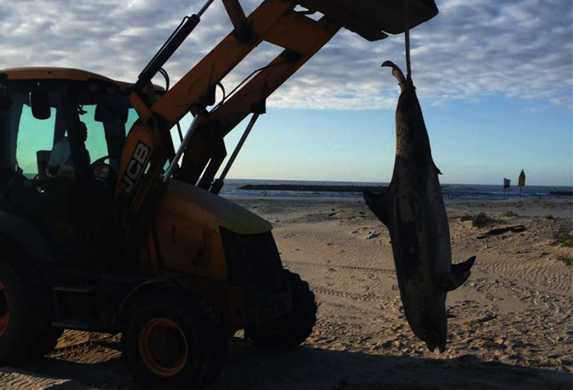 גופת הדולפין שנמצאה הבוקר בחופי אשקלון ונלקחה לנתיחה // צילום: שומרי ים