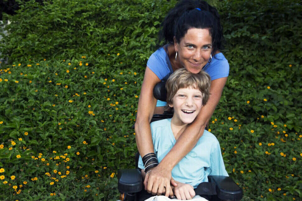 יש ביניהם תקשורת מופלאה של אמא ובן. הקלישאה אהבה ללא מילים מצטיירת כאן במלוא עוזה: הוא מדבר בתנועת גבה, היא מבינה שהוא צריך ללכת לשירותים ומרימה אותו על כפיה. "לצרכים בסיסיים יש לנו מאגר מוכר של הבעות פנים, אבל למשפטים יותר מסובכים זה מורכב. זה יכול לגרום לתסכול, אבל בסוף אני תמיד מצליחה להבין אותו, גם אם לוקח לי עשר דקות לפענח מה הוא מנסה לומר". כשתחזור איתו מהשירותים, תרתק אותו בחזרה בכיסאו, ברצועות עבות.