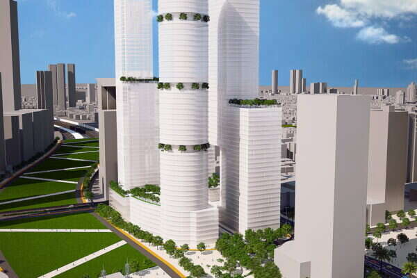 ארבעת המגדלים יכללו בעיקר משרדים ומרכזי תעסוקה, אך תינתן בהם האפשרות גם לשימוש מעורב שיכלול עד 25% לשטחי מגורים. המתחם שייסגר וייבנה מעל נתיבי איילון יכלול גינה ופארק ציבורי גדול. בכל מגדל ניתן לבנות בין 100 ל-150 יחידות דיור, כאשר חלק מיחידות הדיור יהיו יחידות לדיור בר השגה. שטחי הבניה ב-4 המגדלים יהיו כ- 180 אלף מ"ר שטחים עיקריים.