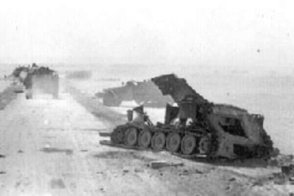 כשירדנו בנסיעה מהירה על ציר "עכביש" מהגבעות לכיוון התעלה, הבחנתי בטנק בוער לצד הכביש. הסבתי את תשומת לבו של איתן, אך הוא אמר לי להמשיך במהירות. עברנו כמה עשרות מטרים וראינו נגמ"ש בוער מעלה עשן שחור בצד שמאל של הכביש. הספקתי להגיד לאיתן שזה לא מוצא חן בעיניי כי הכלים העלו עשן, דבר שהעיד כי פגיעתם הייתה לפני זמן קצר. אך נראה שהיינו כבר במלכודת שלא הייתה דרך יציאה ממנה.