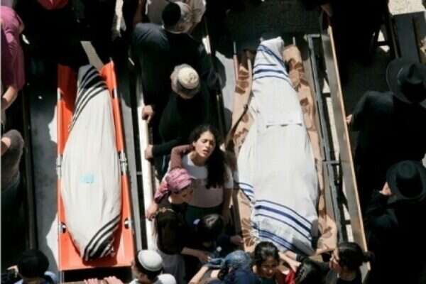 צילום: AP // Mourners at the funeral for victims of a March 2008 terrorist attack in Jerusalem