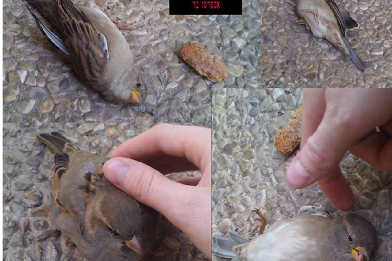 "אתמול בצהריים, יום שבת, 31.8 הסתובבתי ברמת החייל, כשציפור הדרור שעמדה על המדרכה לא ברחה כשהתקרבתי. מצאתי שאני יכולה להרים אותה. היא לא נראתה פצועה, וגם לא הייתה גוזל, אבל לא יכולה הייתה לעוף. חשבתי לקחת אותה אלי הביתה, להאכיל אותה ובתקווה לגלות שהיא סתם הייתה חלשה. נכנסתי לארומה הסמוכים על מנת לבקש שקית נייר להניח בה אותה עד הבית. המוכר הצעיר שראה את הציפור ביד שלי, ענה שזו לא היחידה. הוא סיפר שהמעסיק פיזר רעל בחוץ על מנת שלא יכנסו לתוך הסניף ויאכלו מהקוראסונים שנמצאים על המדפים", כך מספרת הגולשת.