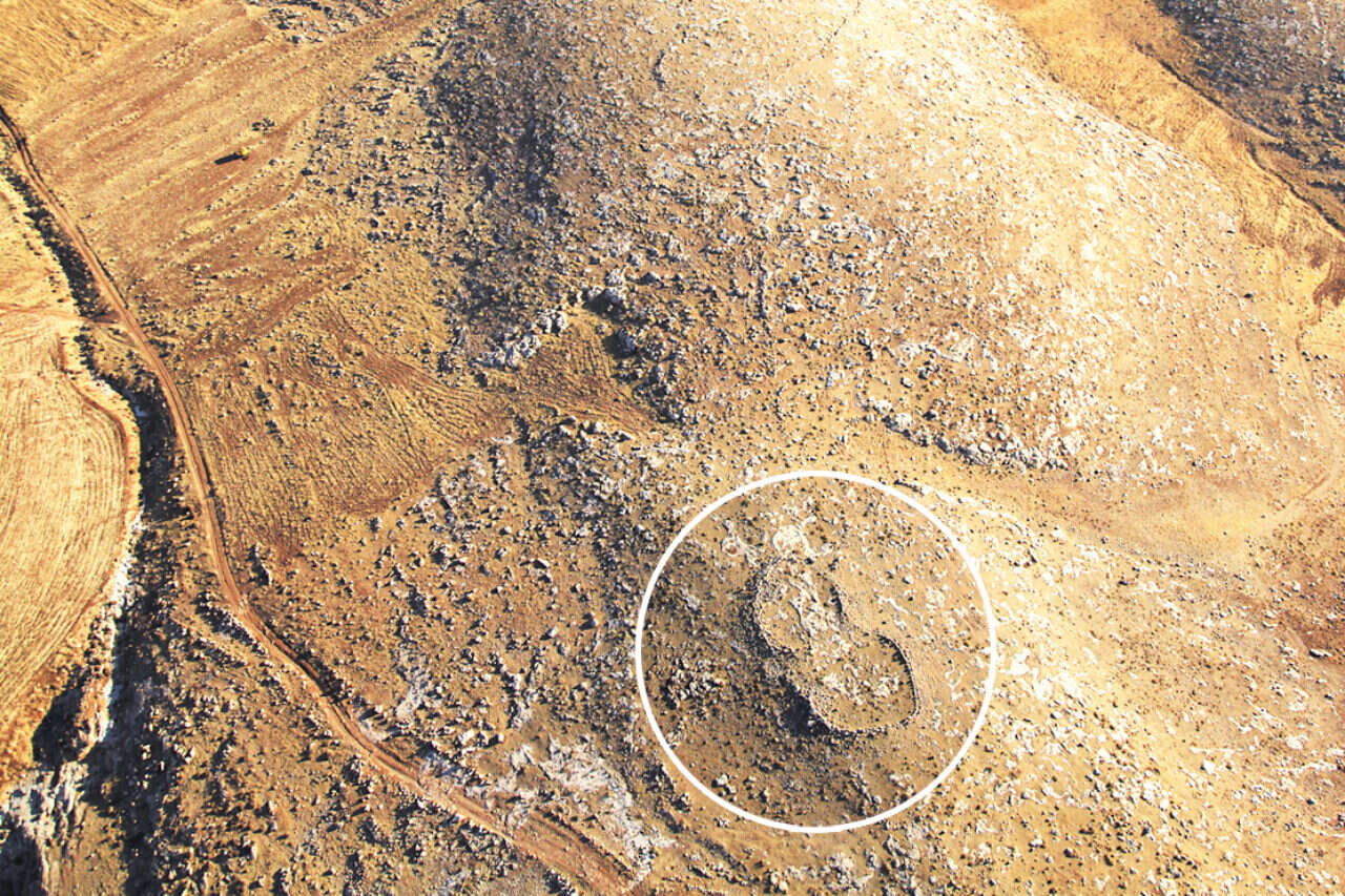 זרטל החליט לחרוג ממנהגו והחל לסרוק תצלומי אוויר של האזור. הנחתו היתה שאם התיאוריה שלו בדבר כפות הרגל נכונה, כי אז אמור להימצא בגבול יהודה ובנימין מתחם בצורת כף רגל.