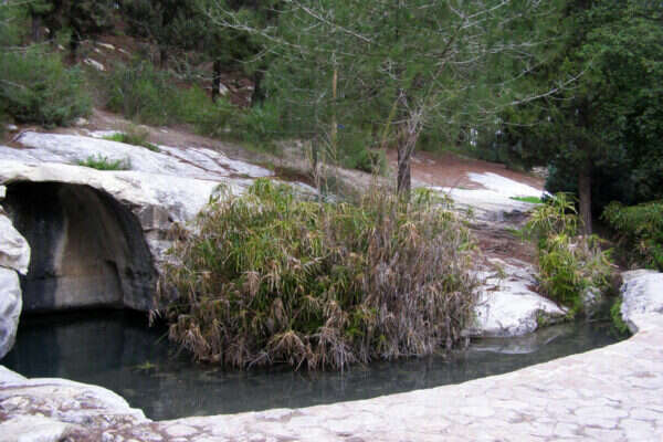 ירידה קצרה מהחניון תביא אותנו אל גדת הנחל שלאורכו נלך עד בריכת שכשוך קטנה ורדודה, שאפשר לעצור בה להתרעננות קצרה עם הילדים ולשבת בצמוד למפל הקטן שזורם במשך כל השנה. מהבריכה נמשיך לאורך הנחל, נעבור מבנה של תחנת שאיבה ונמשיך במסלול לצד מנהרות בסבך הקנים שאפשר לעבור בהם במעין מבוך חווייתי כמעט כמו בג'ונגל, לטפס בזהירות על עץ שעובר כמו גשר על פני הערוץ היבש ולהיכנס למערה נמוכה שעל התקרה שלה הצטברו נטיפים קטנים כמו במועדוני שנות ה־70 בקיבוצי הסביבה.