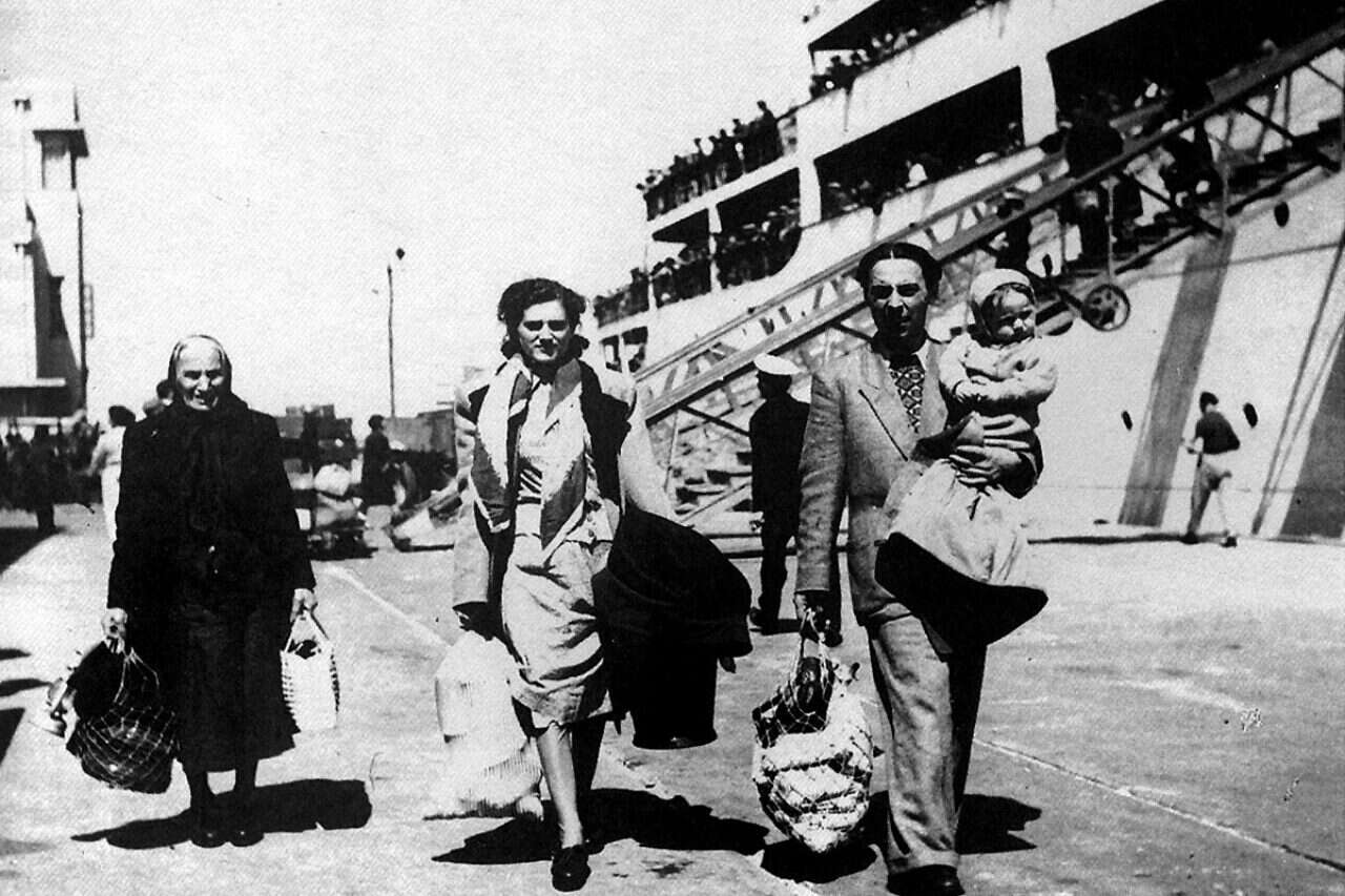 צילום: מתוך הסרט "יהודים למכירה" // עולים מרומניה בנמל חיפה ב-1951.סוכנים ישראלים הבריחו חזירונים במכוניות דיפלומטיות