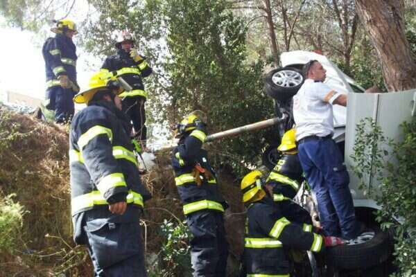 חיפה: הנוסעים הידרדרו לתהום - ונלכדו ברכב