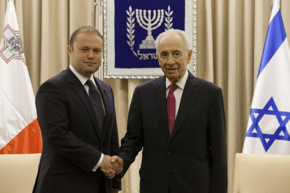 תחילה נפגש הנשיא עם ראש ממשלת מלטה, שביקורו הנוכחי מהווה את הביקור הראשון של ראש ממשלה ממדינתו אי פעם בישראל. בפתח הפגישה התייחס פרס לסוגיות הנוגעות ליציבות במזרח התיכון ואמר, כי "לישראל ומלטה אינטרסים משותפים בנעשה הן באירופה והן במזרח התיכון. המצב בסוריה והמצב בצפון אפריקה משפיעים רבות על מלטה וגם על ישראל".