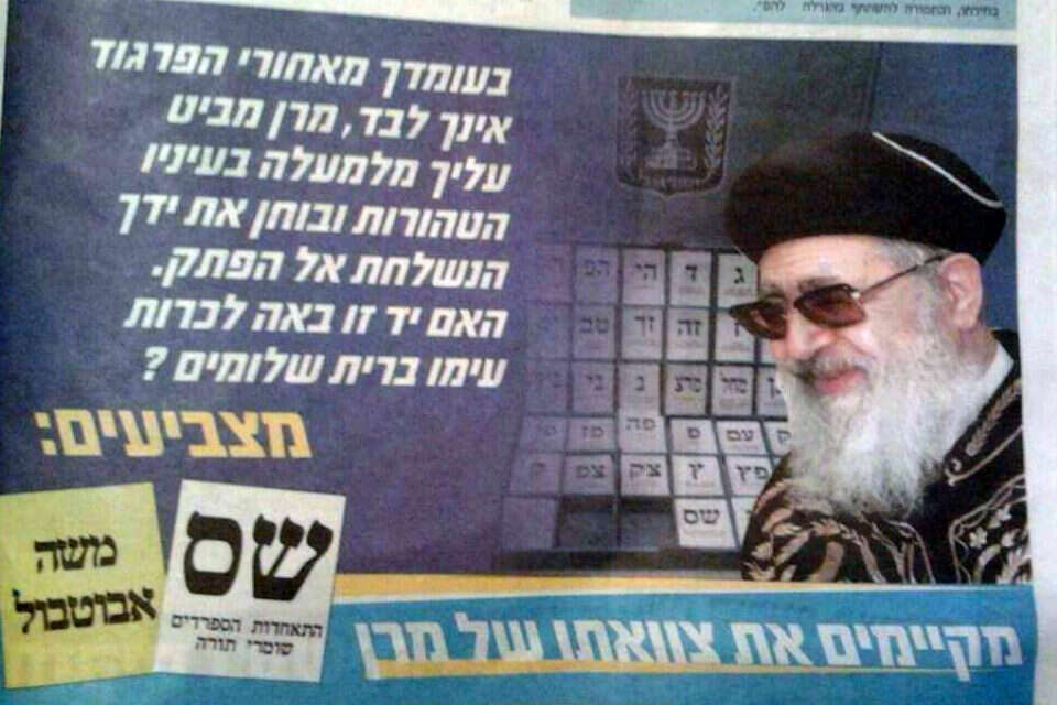 בש"ס ממשיכים לנצל את שמו וסמכותו של הרב עובדיה יוסף זצ"ל בניסיון לקושש עוד קולות בבחירות לרשויות המקומיות. כך, למשל, פורסמה בעיר בית שמש מודעה המבקשת לתמוך במועמד ש"ס במקום, משה אבוטבול. במודעה שהופצה במקומון "תמורה" בעיר נראית תמונתו של הרב עובדיה ולידה נכתב: "בעומדך מאחורי הפרגוד אינך לבד, מרן מביט עליך מלמעלה בעיניו הטהורות ובוחן את ידך הנשלחת אל הפתק. האם יד זו באה לכרות עימו ברית שלומים?" יש לציין כי כבר באזכרתו של הרב לפני כשבוע חולקו מאות אלפי נרות נשמה, שעליהם התנוססה תמונתו של הרב עובדיה והכיתוב "לאורו נלך" עם האותיות ש"ס.