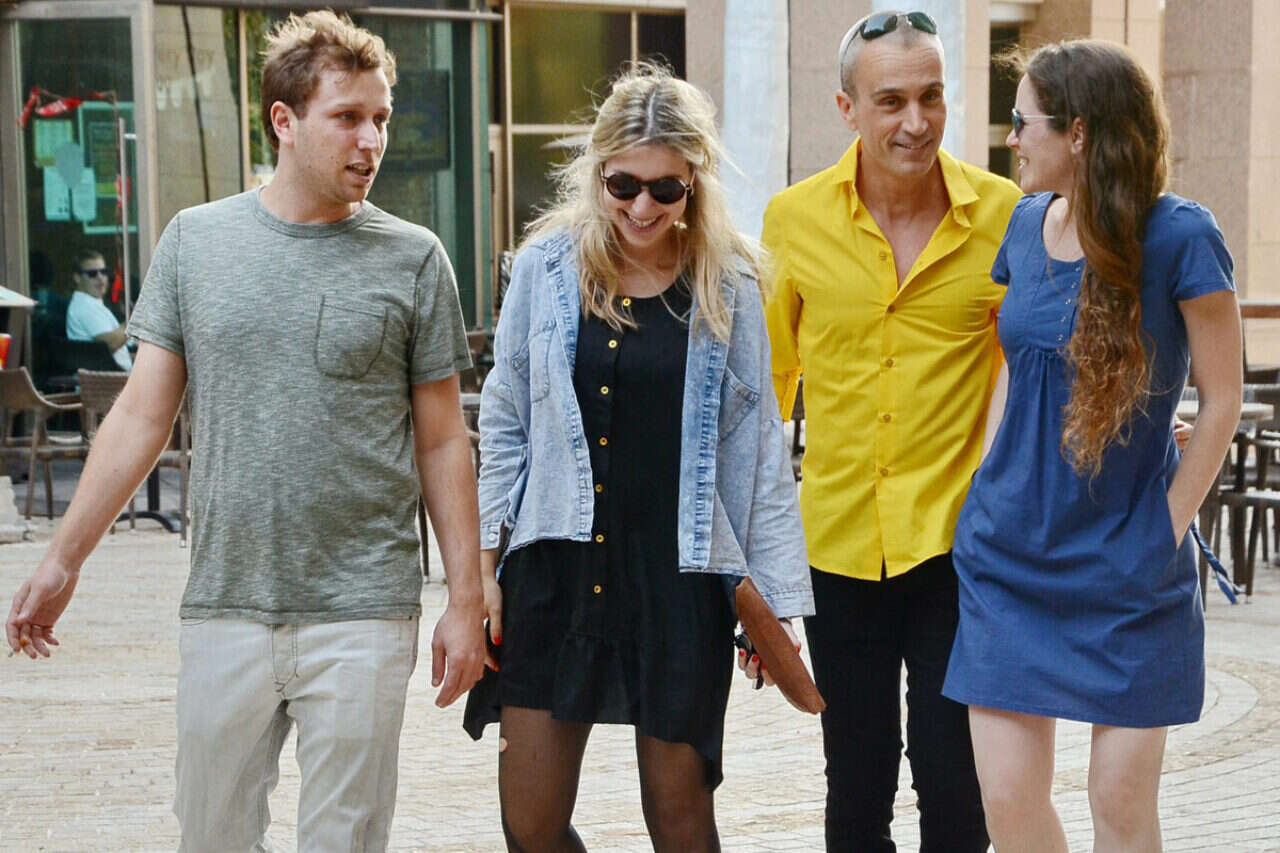 ליאור דיין // זה לא ששני הזוגות שבתמונה איחרו יחד למופע של "מיומנה" בזאפה. אברי גלעד ואשתו נעמה שוחט וליאור דיין ואשתו רוני סילבר פשוט נפגשו בדרך. הצחוקים הם בעקבות בדיחה שסיפר דיין