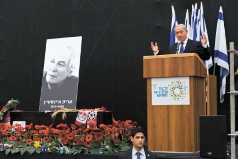 Thousands of mourners from across the country, including many of Israel's best-known singers and actors, came to Tel Aviv's Rabin Square with flowers and memorial candles on Wednesday to pay their last respects to Israeli music icon Arik Einstein, who died Tuesday night at age 74. The legendary singer's coffin was on display in the square until the funeral service in Tel Aviv's Trumpeldor Cemetery on Wednesday afternoon. "You lived in a world of goodness. You didn't understand the bad, you couldn't understand the bad," said Rabbi Uri Zohar, a close friend and former co-star whose daughter married Einstein's son. The funeral was attended by Israeli entertainment greats including Shlomo "Moni" Moshonov, Shalom Hanoch, Shlomo Artzi, Matti Caspi, Yoni Rechter and Tzvi Shiesel. Prime Minister Benjamin Netanyahu also went to Rabin Square and eulogized the singer. "We all grew up on your songs, we laughed to tears from your sketches, we were moved by your films. In a nation of great artists, great singers, it's not a simple thing to say this, but it's true -- you were greater than all of them," Netanyahu told the crowd. "You were a wonderful artist, and just as much, you were a wonderful man. Your creations are a part of the Israeli nation's culture in its land, and your creations will continue to live on with us." Hanoch performed Einstein's song "Children of Life" for the crowd, audibly choking back tears as mourners lined up to place flowers, mostly red, the color of Einstein's favorite soccer team Hapoel Tel Aviv, on the casket. Actor Israel Gurion reminisced about his friend and colleague: "I prayed and hoped that he would pull through, but it didn't happen. A huge loss. He was a great artist, a great singer, a great friend. He was an unbelievably funny man, as a singer, he was a giant. He was our Frank Sinatra." Einstein died of an aortic aneurysm at Ichilov Hospital in Tel Aviv. Doctors tried to save his life with emergency surgery. "You give everything for the patient. It doesn't matter who it is. In this case we knew, appreciated and admired him, and it also has public resonance. Unfortunately, we failed. That burden will stay with us," said Dr. Yanai Ben-Gal, director of the hospital's cardiothoracic surgery department. Einstein was a youth high-jump champion and had not planned to be a musician, but after joining the army's Nahal band at his father's urging, found his career taking off. He sang in popular groups and starred in cult movies, including the classic "Metzizim" ("Peeping Toms"). Einstein also launched a solo career that featured numerous collaborations with Israeli musicians, quickly earning him his place as the most recognizable voice in Israel. Summing up national feelings toward the singer, Netanyahu said Wednesday, "Arik, love is what we feel for you. Thank you, Arik Einstein, thank you for the wealth of happiness and feeling with which you enriched our lives."