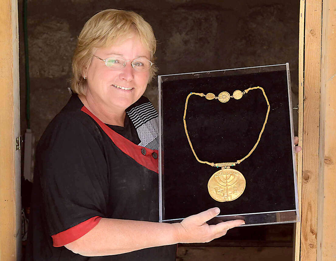"יחד עם מדליון המנורה", מגלה מזר, "נארז גם מדליון זהב קטן, שבמרכזו היה כנראה שיבוץ שלא שרד. מצידיו הופיעו שתי נטיפות זהב בצורת ניצני פרח מסוגננים וסליל זהב שככל הנראה היה שייך לאותו תכשיט. היה שם גם פריט כסף, מעין סוגר, דומה לצמיד, מעוטר בשתי כיפות בולטות. הצורה שבה נמצאו הממצאים תחת המדליון ושריגי אריג שנמצאו על הסוגר, לימדו אותנו שהיה מונח בתוך תיק מחומר מתכלה.