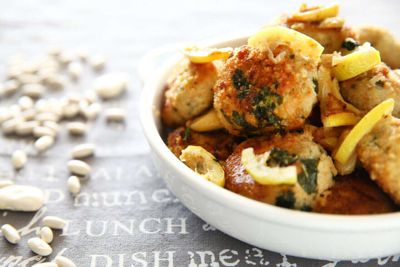 • מרוקנים את שאריות השמן מהמחבת ויוצקים 3 כפות משמן השום. מוסיפים את פלחי הלימון ואת שיני השום ששמרנו להגשה. מחממים. מוסיפים את הקציצות, מערבבים ומגישים.