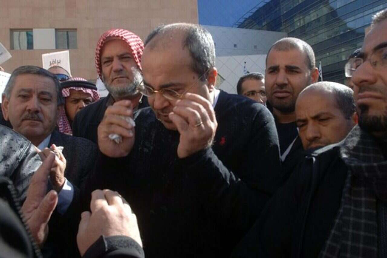 במהלך ההפגנה, שהייתה שקטה יחסית, התקרב גבר לעבר ח"כ טיבי, שפך על פניו כוס תה חם שהחזיק בידו ונמלט. טיבי מסר לאחר האירוע כי חש צריבה בעיניו מהמשקה החם. "זו התנהגות ברוטלית, אלימה, כלפי ההפגנה, כלפי נבחר ציבור שמשתתף בהפגנה לגיטימית", אמר ח"כ טיבי לאחר התקרית.