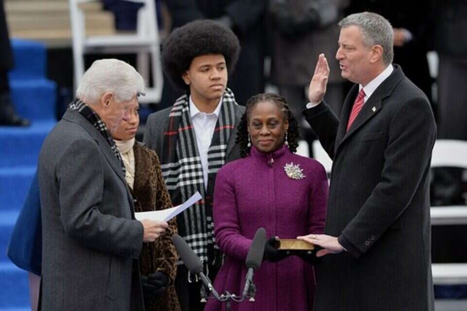 דקה אחרי כניסתה של שנת 2014, כשהוא עם בני משפחתו מחוץ לביתו שבברוקלין, הושבע ביל דה בלאזיו בן ה־52 לראשות עיריית ניו יורק והפך לראש העיר הדמוקרטי הראשון בתפוח הגדול זה יותר משני עשורים. 12 שעות אחר כך נערך הטקס הרשמי למרגלות העירייה בעיר התחתית של מנהטן, שם הושבע שוב, והפעם על ידי חברו הטוב, הנשיא לשעבר ביל קלינטון.
