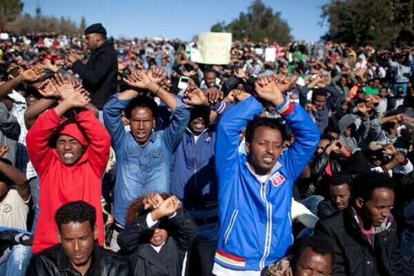 המהגרים, כאמור, הפגינו אתמול בירושלים. אלפי מסתננים מאפריקה הגיעו לבירה בהסעות מאורגנות וקיימו הפגנת מחאה מול הכנסת. באירוע השתתף הסופר דויד גרוסמן, שאמר למפגינים כי הוא "מקווה שהרדיפה וההשפלה שאתם סופגים ייפסקו".