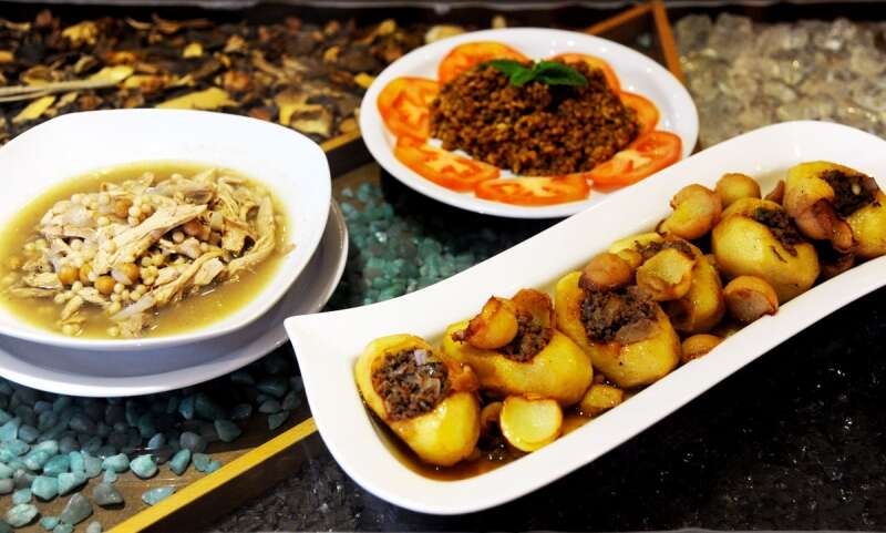 סוהיל משנה את התפריט בהתאם לעונות השנה ולירקות העונה. אנחנו אכלנו מג'דרה מצוינת עם עדשים חומות ובורגול, ומוגבייה - ארוחה מרקית טעימה של עוף רך עם חומוס ופתיתים. אכלנו גם תפוח אדמה ממולא בבשר ובצנוברים שהיה מעולה, קובה בורגול ממולאת בשר, וכמנות פתיחה סמבוסק עם גבינה וזעתר ופלאפל ביתי בטחינה לבנה עם חרדל בר. כולם היו טעימים מאוד, וגם הלחם המיוחד שנאפה במקום: דומה לפיתה בטאבון שהיא מעט יותר קראנצ'ית, שנאפית עם חמאה, שום ופיצוחים.