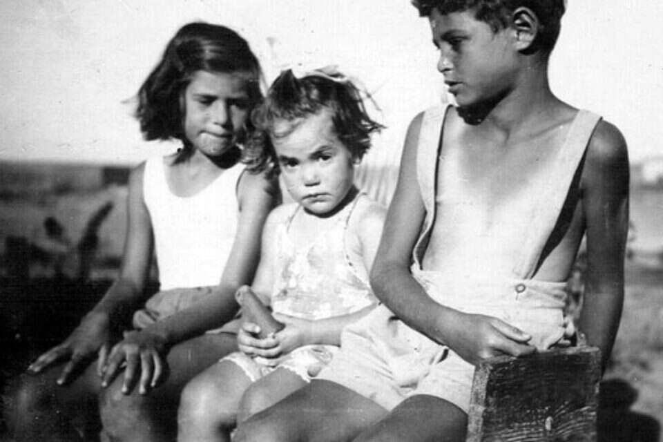 26. 1946-7 זאב (וולפי) מילדי טהרן עם יעל (להמן) ומיכל (שפיר) בלנקנשטיין