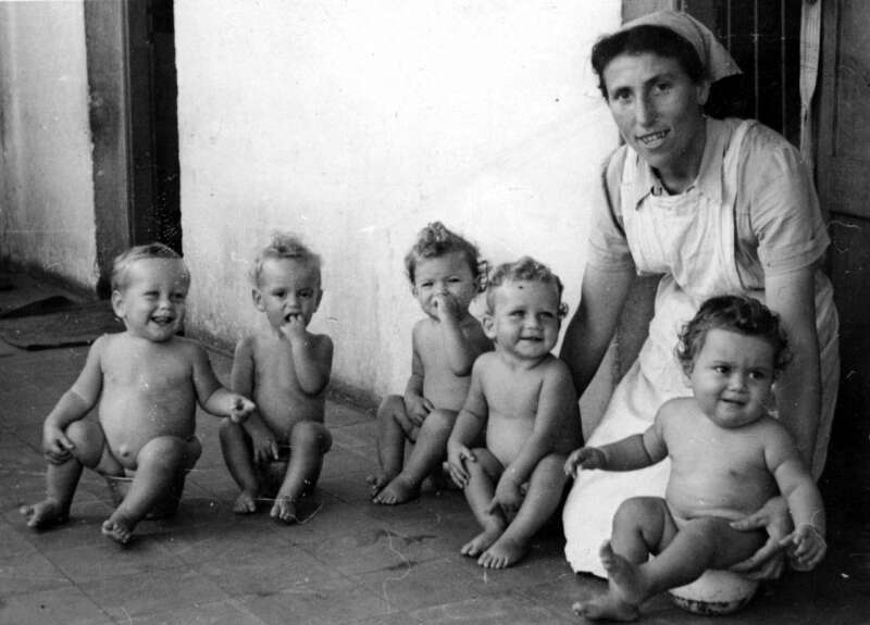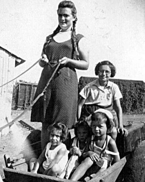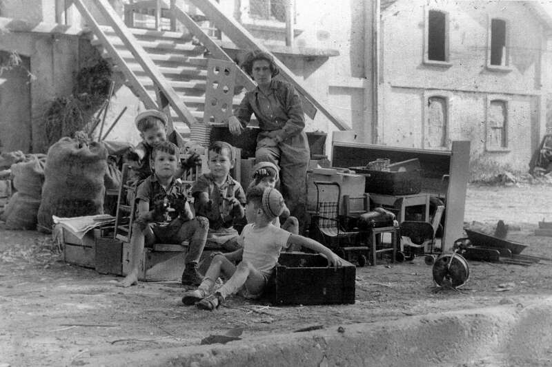 28. 1947 הילדים עם המטפלת המיתולוגית רחל'שן בלנקנשטיין