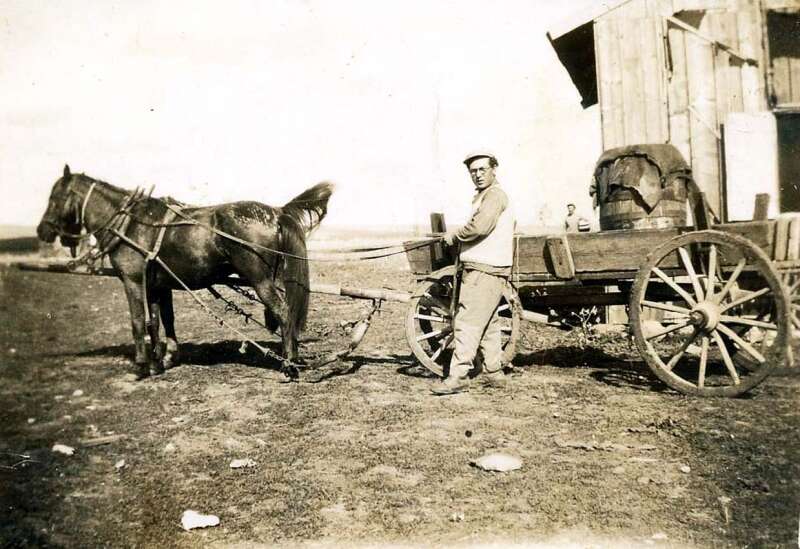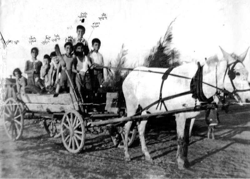 6. על הכרכרה במחנה רמת השומרון הבן היושב הוא אשר גרינברגר, בכור ילדי הקבוצה