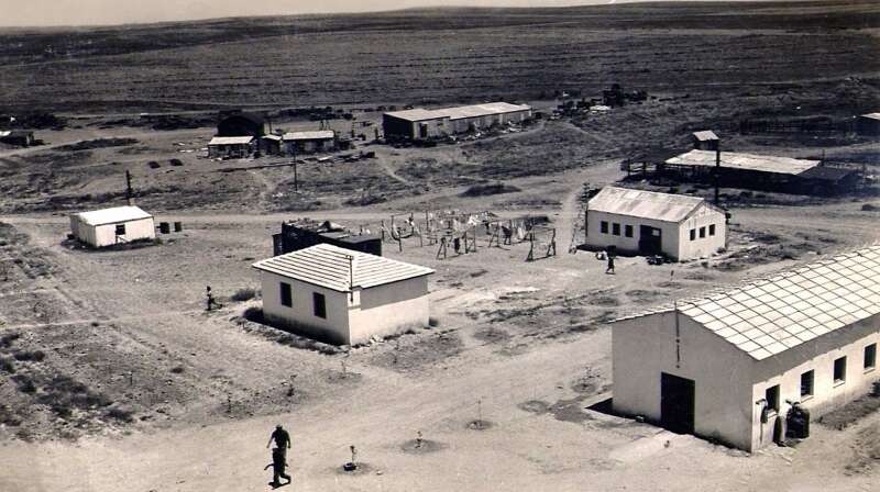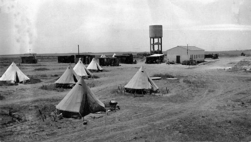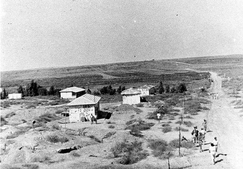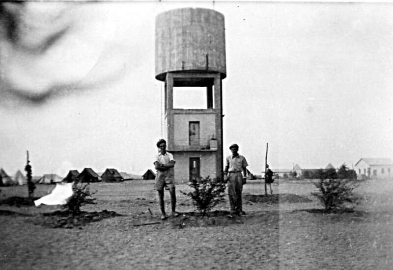 21. 1945 אוהלים, ליפטים, חדר אוכל ומגדל המים בבארות יצחק נגב