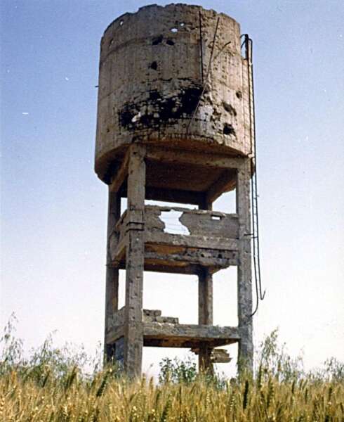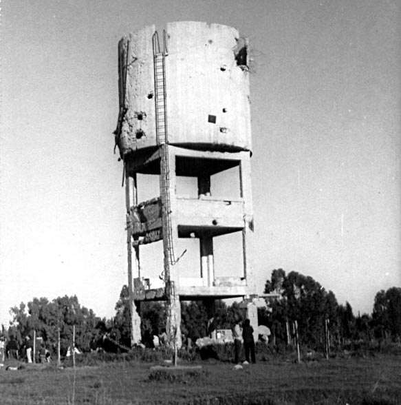 34. אח"כ באו הפגזות רבות הפצצות של מטוסים מצריים ותקיפות מהקרקע של רגלים וטנקים. מגדל המים נפגע פגיעה ישירה מפצצת מטוס שחדרה לתוכו. המים שהיו במגדל הציפו תעלות קשר.
