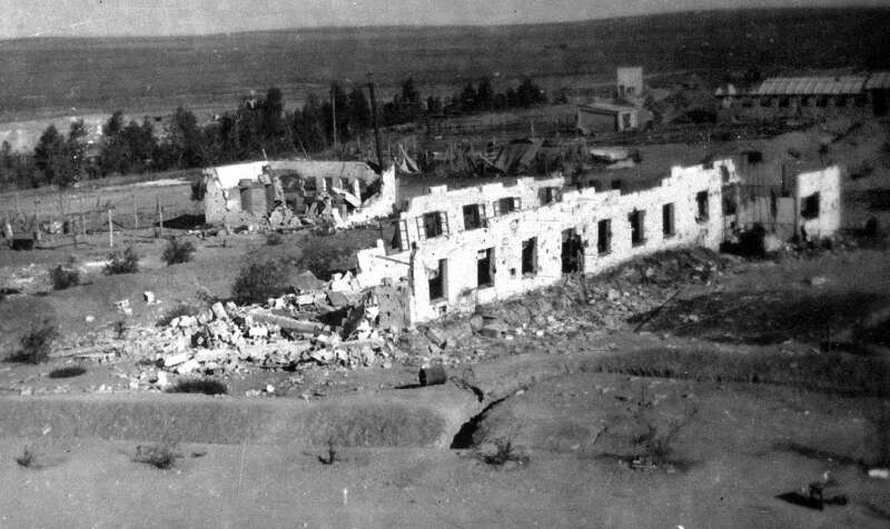 36. מבנה הגנון ההרוס. כאן הצליחו המצרים להיאחז בפאתי הישוב ובלחימה עיקשת הונסו משם