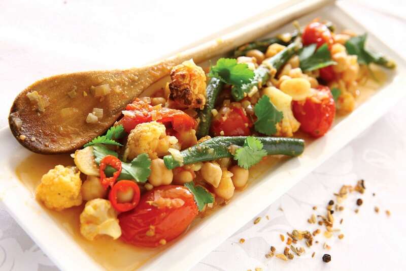 7. מוסיפים את פרחי הכרובית, העגבניות הצלויות והשעועית החלוטה, מבשלים יחד במשך כ־5 דקות.