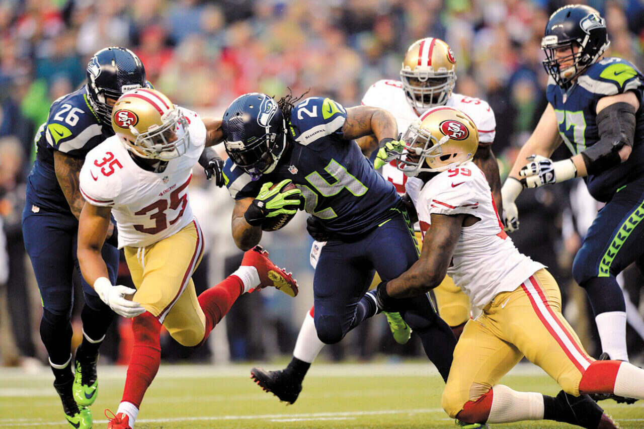 כל זה כשהמומנטום בשדה כבר בידי סיאטל, שהצליחה לבסס את משחק ההתקפה היותר מאוזן שלה סביב מרשן לינץ', נושא הכדור האימתני שהשיג 104 יארד וטאצ'דאון של 40 יארד. ראסל ווילסון מסר ל־2:15 יארד.
