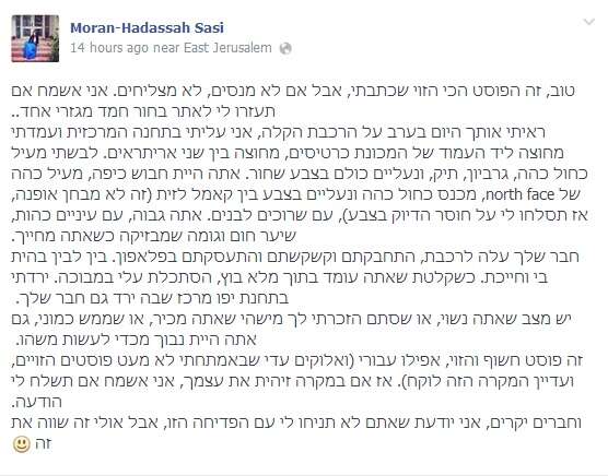 מורן החליטה לעשות מעשה, הניחה את המבוכה בצד ופרסמה את הפוסט הבא: