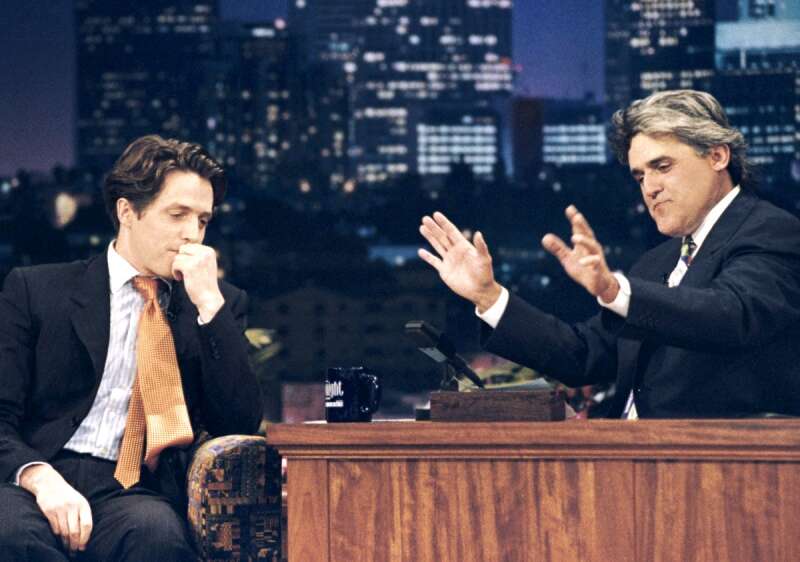 יו גרנט מגיע לספה של לנו אחרי שנתפס על חם עם פרוצה. צילום: NBC-UNIVERSAL
