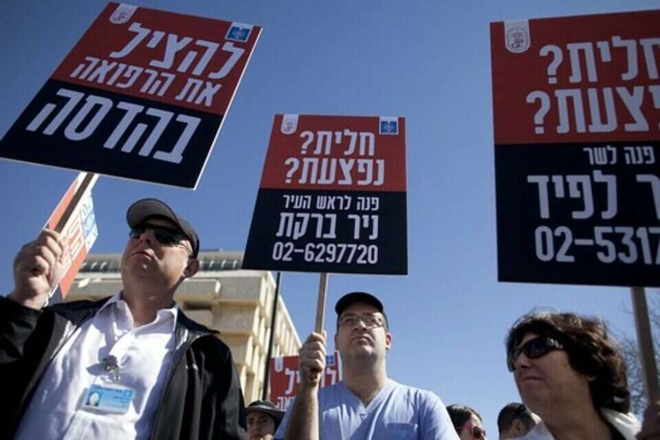 עובדי מנהל בית חולים הדסה, האחים והאחיות צועדים ממוזיאון ישראל אל מול משרד האוצר וצועקים: "ביבי תתעורר הדסה שווה יותר". המפגינים נושאים שלטים בהם נכתב: "הדסה צריכה ניתוח לב פתוח" ו"על עבודה משלמים".