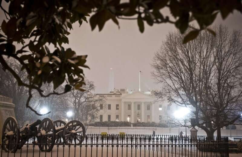 הבית הלבן מכוסה לבן. צילום: אי.אף.פי