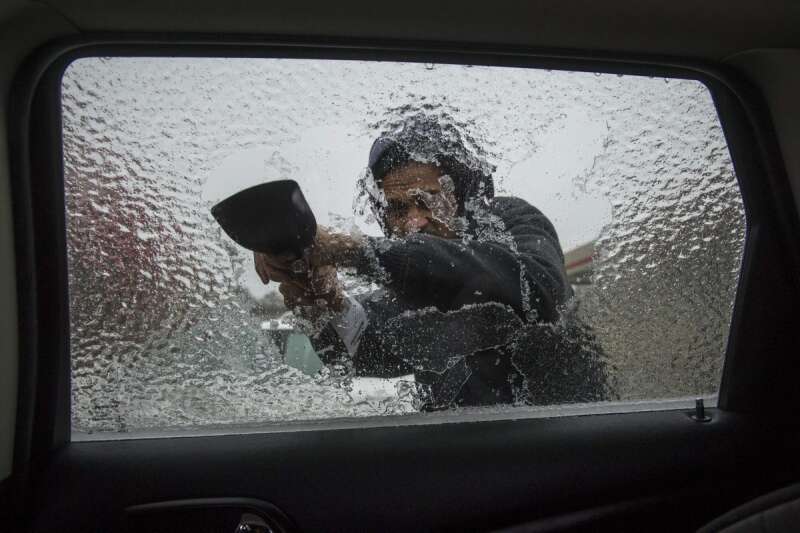 אדם מחלץ את מכוניתו מהקרח, ג'ורג'יה. צילום: אי.פי