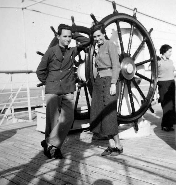 17. יהושע ויהודית על אוניה בדרכם לבקר קרובי משפחה באירופה, שנות ה-30.