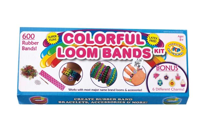 600 גומיות, סוגרים, נול, מסרגה וחוברת הדרכה בעברית