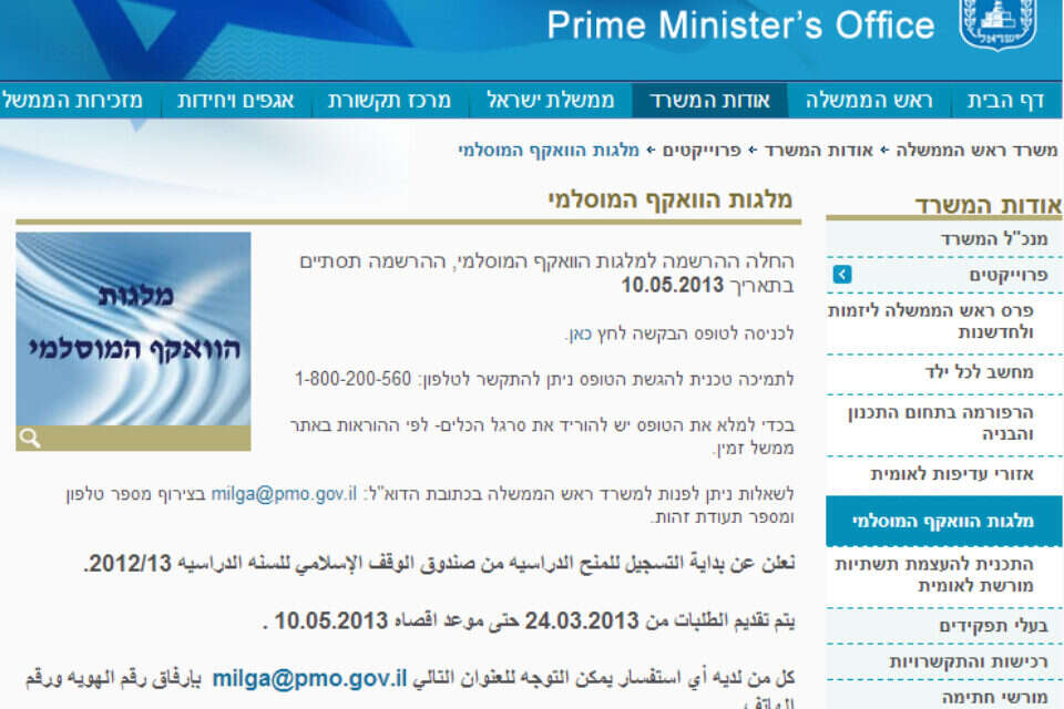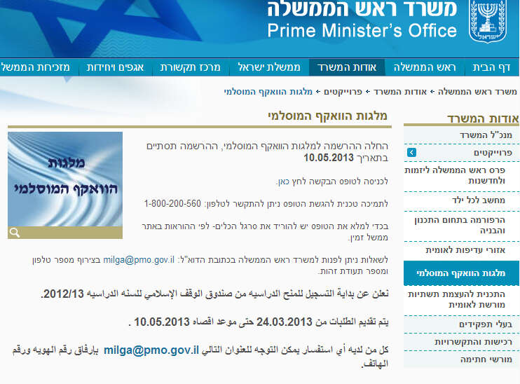 מי מעניק את "מלגות הוואקף המוסלמי"? משרד ראש הממשלה. באתר האינטרנט של משרד ראש הממשלה ישנה הודעה שקוראת לציבור המוסלמי בישראל להגיש בקשות לקבלת מלגה.