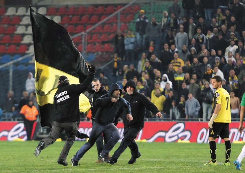אוהדי בית"ר בפעולה. פוגעים במועדון צילום: עמי שומן