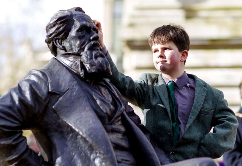 אוליבר דיקנס, בן 9, דור חמישי לסופר הגדול צ'רלס דיקנס, מביט בפסלו בכיכר גילדהול שבעיר הנמל פורטסמות' שבדרום אנגליה. הפסל נחנך בשבוע שעבר כחלק מחגיגות יום ההולדת ה־202 לדיקנס, שנולד בפורטסמות' ב־1812 ובהמשך עבר עם משפחתו למחוז קנט - וממנו ללונדון. בית ילדותו של דיקנס בפורטסמות' משמש כיום מוזיאון ליצירתו, והעיר מקפידה לציין את יום הולדתו בכל שנה, כחלק מ"מאבק" בתפיסה הציבורית של דיקנס כ"סופר לונדוני". בימים שקדמו לחנוכת הפסל נערכו בפורטסמות' אף ירידים ברוח דיקנסית, בהשתתפות שחקנים שגילמו את גיבוריו.