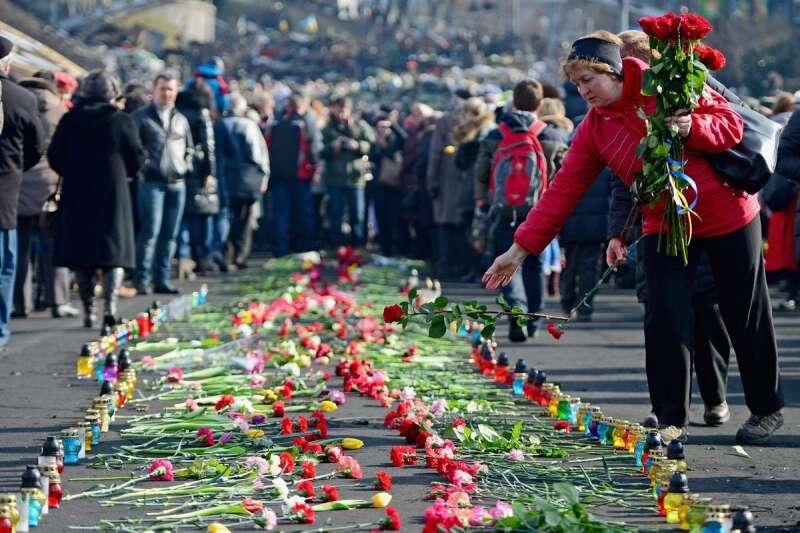 פרחים במקום אש, מבכים את מותם של ההמונים בכיכר. צילום: GettyImages