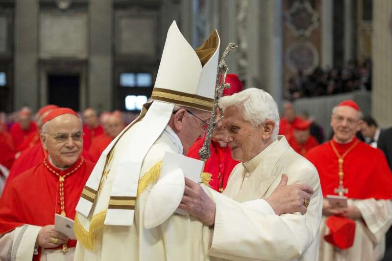 בנדיקטוס ה־16 (מימין), שמרן, נוקדן ומעורר פחד. צילום: רויטרס