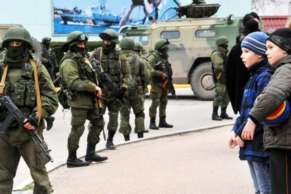 החיילים הרוסים אמנם הסירו את תגי היחידה וכל סימן זיהוי אחר, ואף הסתירו את פניהם באמצעות כובעי גרב, אך המדים והציוד לא הותירו מקום לספק כי מדובר בחיילים רוסים ולא במיליציה מקומית. ההשתלטות לא היתה מורכבת, שכן לרוסיה יש נכסים אסטרטגיים באזור קרים ואולי הנכס המרכזי: רוב של רוסים אתניים.