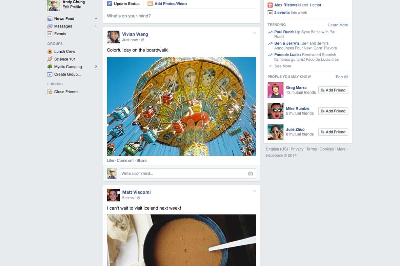 במהלך ניסוי עם מספר קטן של משתמשים, שהחל בחודש מארס אשתקד, הבינו בחברת פייסבוק כי הגולשים אינם אוהבים שמשנים להם את אופן הניווט, ולכן בעדכון הנוכחי הניווט יישאר זהה לניווט הקיים. בעיצוב החדש ישולב ניווט רגיל יחד עם תמונות גדולות יותר. גם המשתמשים שהשתתפו בניסוי יקבלו את העדכון לעיצוב החדש. העיצוב אינו דורש התאמות של המודעות, ולכן המפרסמים אינם צריכים לבצע עיצוב מחדש של המודעות בפייסבוק.