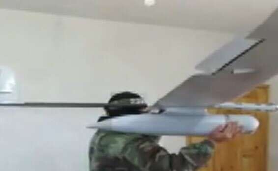 בסרטון נראה טרוריסט רעול פנים שמציג את מה שחמאס טוען כי הוא המזל"ט, ועליו כיתובים בעברית.