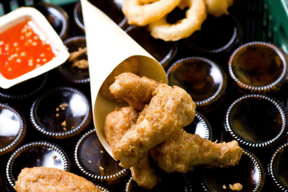כנפיים וטבעות בצל בבלילת בצק גינס